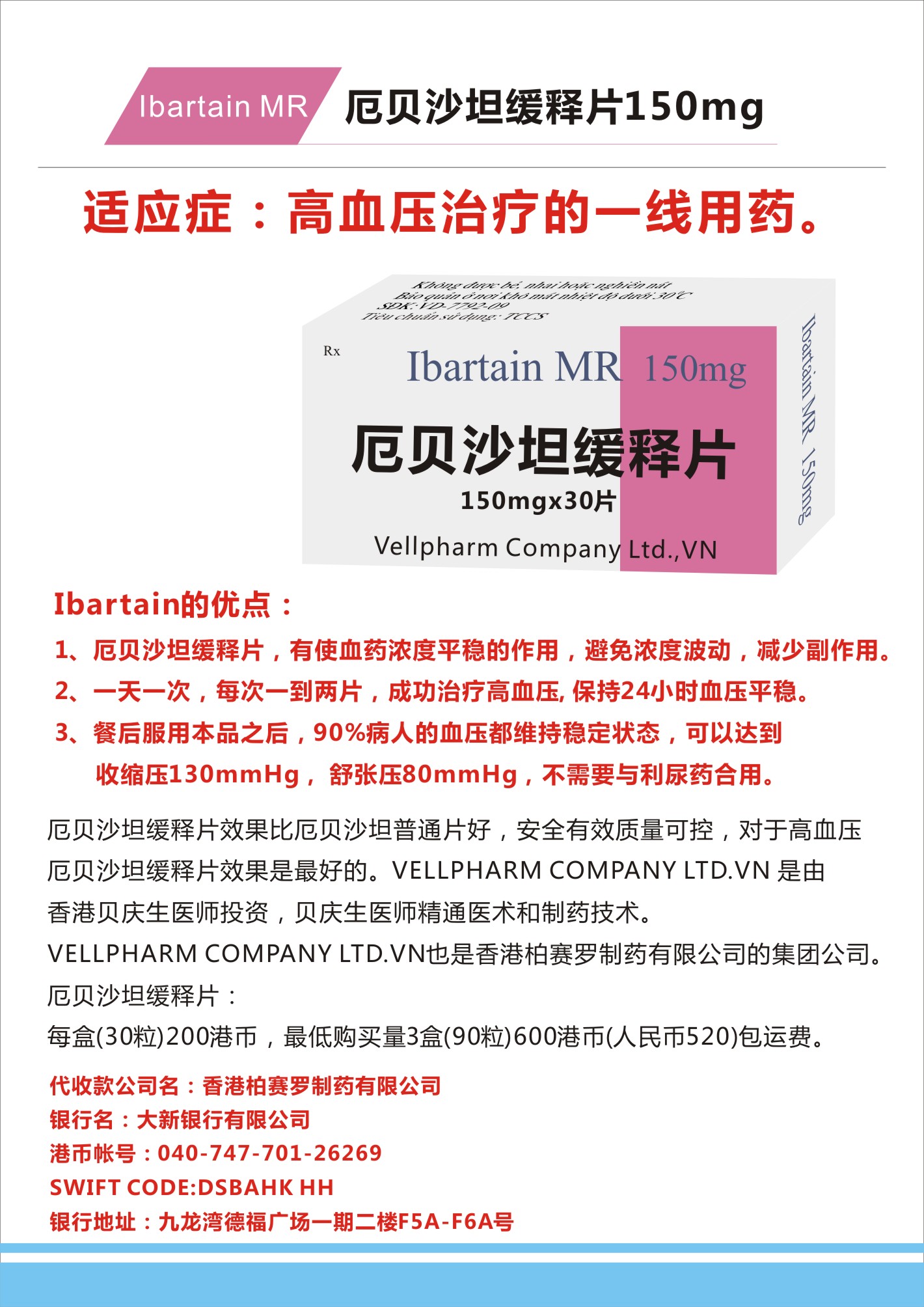 高血压,可单独使用或与其他抗高血压药物合并使用。